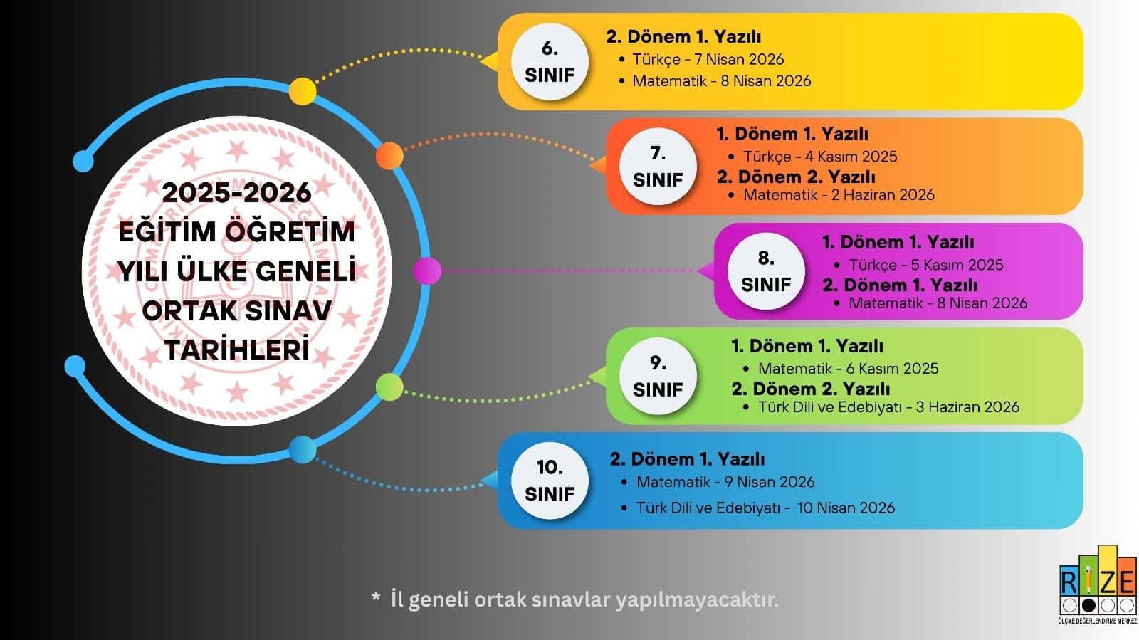 2025 - 2026 Eğitim Öğretim yılında yapılacak olan "Ülke Geneli Ortak Sınav" Takvimi